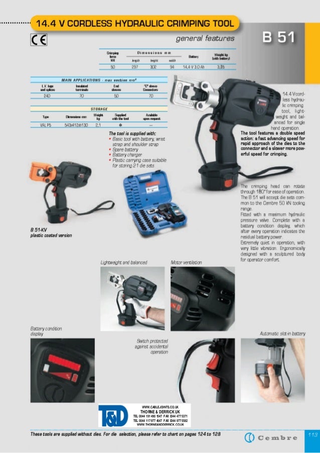 CEMBRE 50MM DIE SET FOR HT50. The cordless hydraulic crimping tool features a double speed action: a fast advancing speed. See other formats - Internet Archive. Other Tools Cembre.